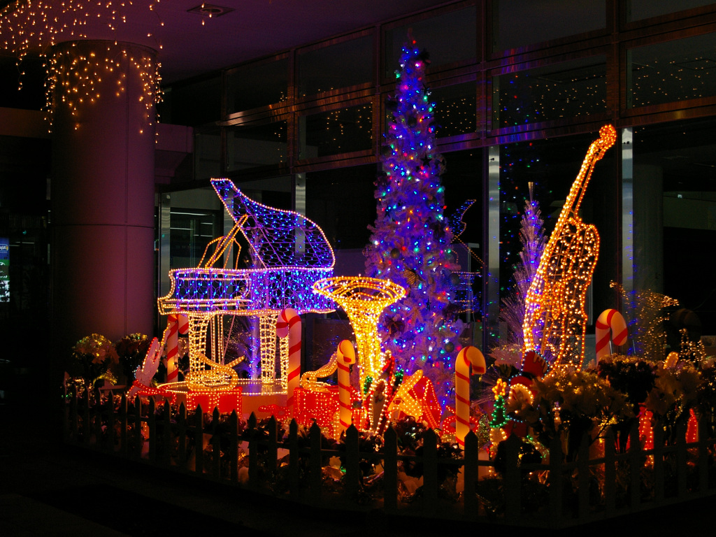 静岡市駿河区区役所前にて (クリスマスソングに合わせてイルミが点滅します。)