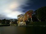 月下の彦根城内堀